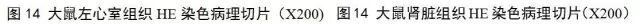 从图14的HE染色肾脏组织切片光镜检测中可见灌服L. helveticus H9发酵乳明显降低SHR的肾脏组织的病变状况,其各实验组病理学观察特点如下:
